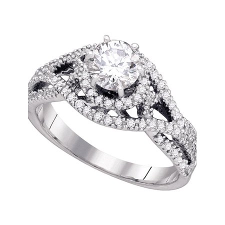 <ul> <li>14kt White Gold</li> <li>7/8 Carats total weight --- 3/8 carat center solitaire</li> <li>4.76 grams (approximately)</li> <li>Ring size selectable. All diamonds are natural and conflict-free in origin.</li> </ul>
