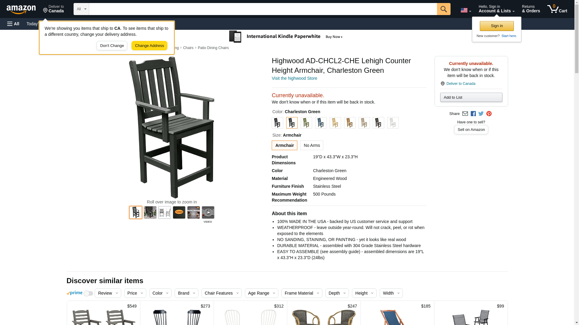 Highwood AD-CHCL2-CHE Lehigh Counter Height Armchair, Charleston Green