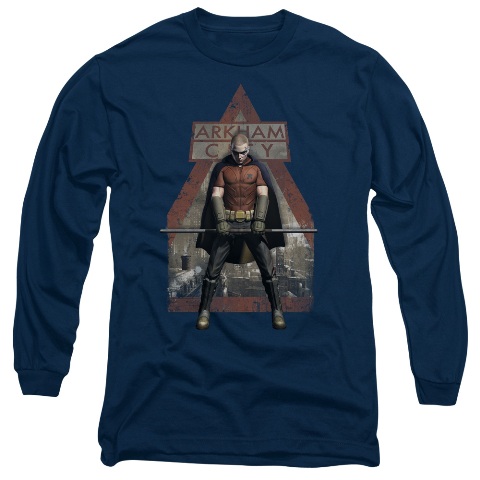 Trevco Arkham City-Arkham Robin - Long Sleeve Adult 18-1 Tee - Navy, Large