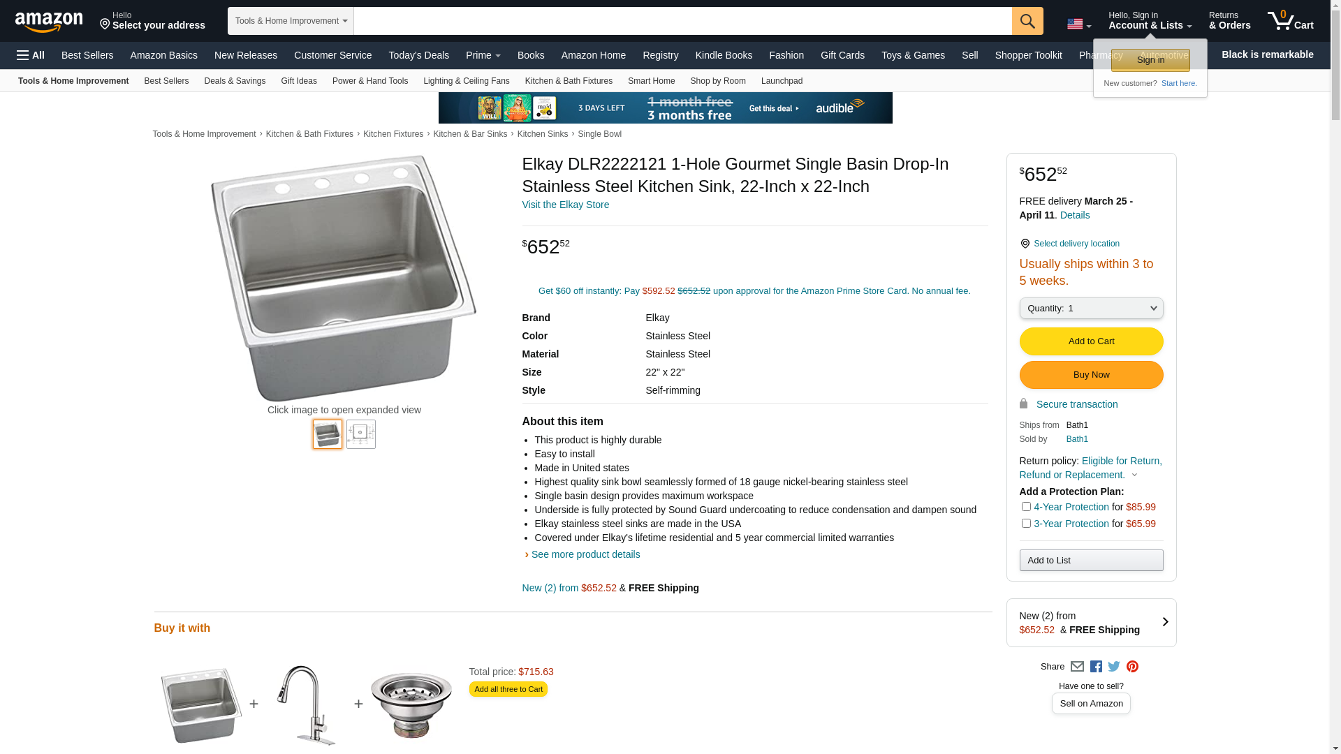 | ELKAY-DLR2222121 | 1 | 1 | 1 @ $660.60 |