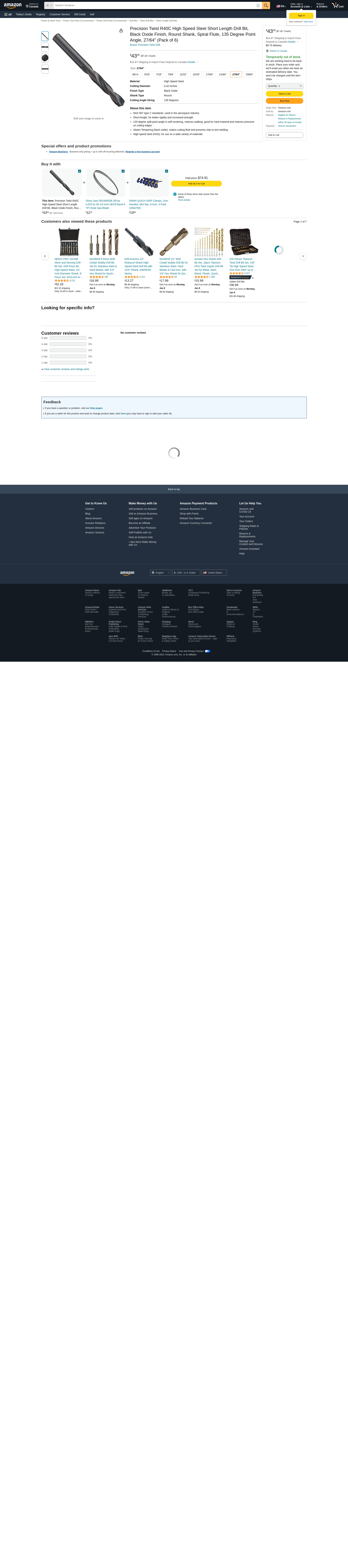 Precision Twist R40C High Speed Steel Short Length Drill Bit, Black Oxide Finish, Round Shank, Spiral Flute, 135 Degree Point Angle, 27/64" (Pack of 6)