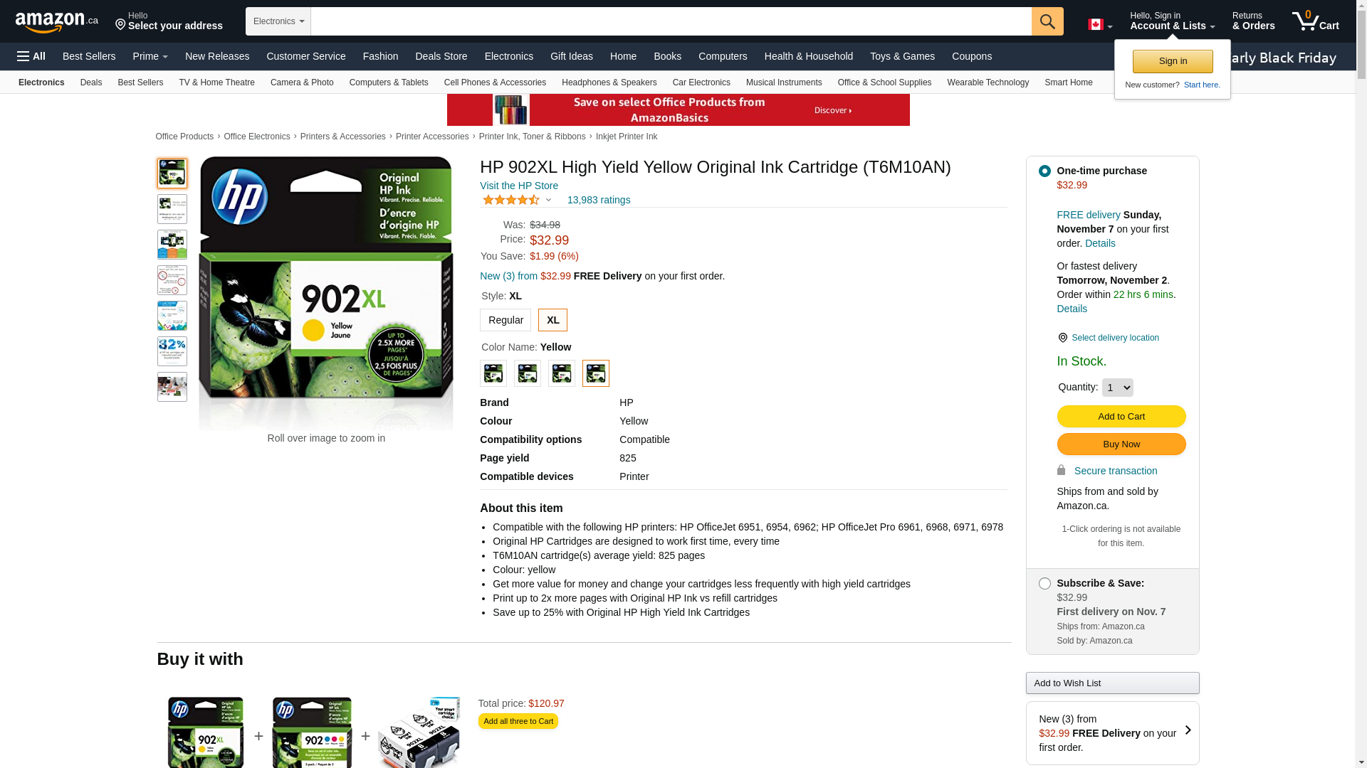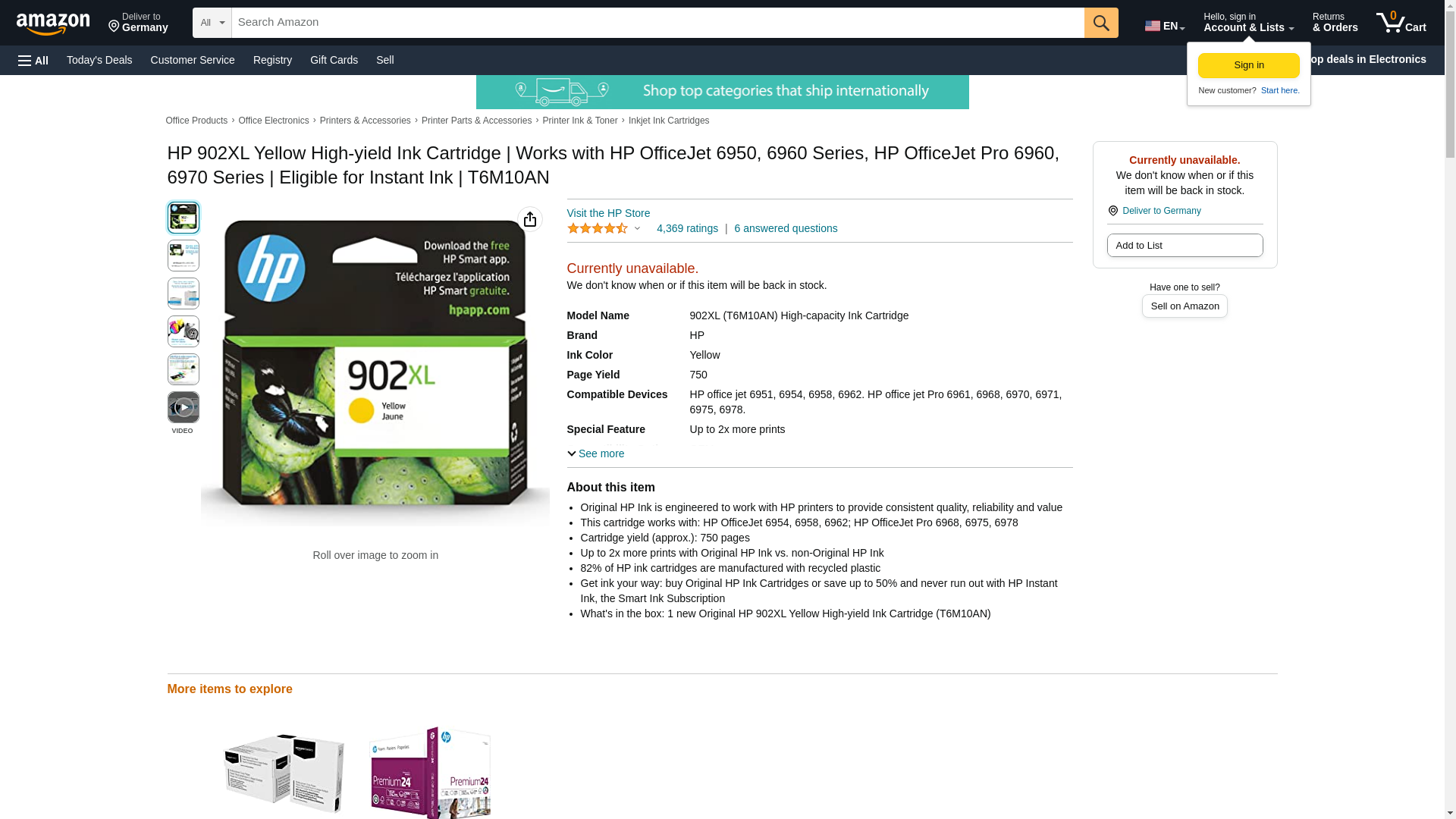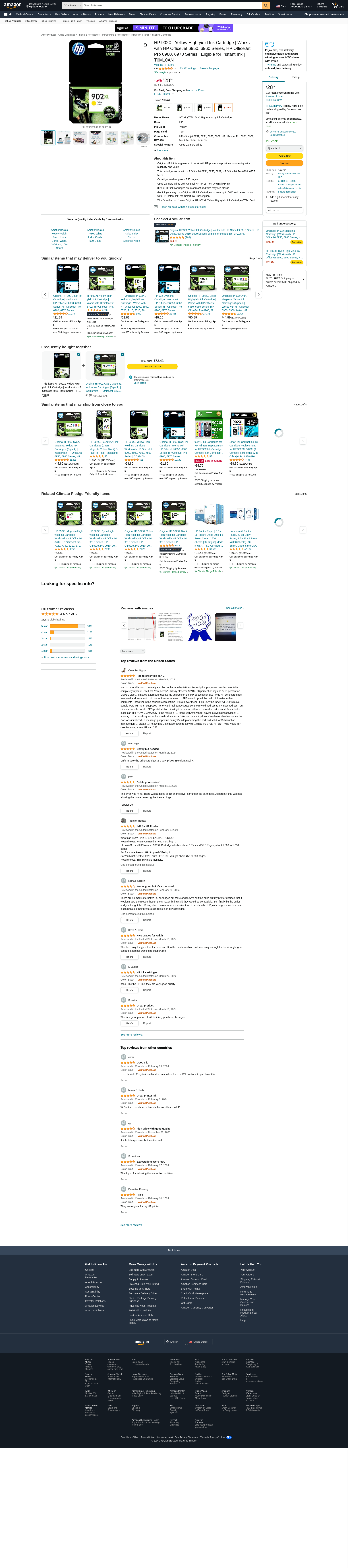 - What's in the box: 1 new Original HP 902XL Yellow High-yield Ink Cartridge (T6M10AN)