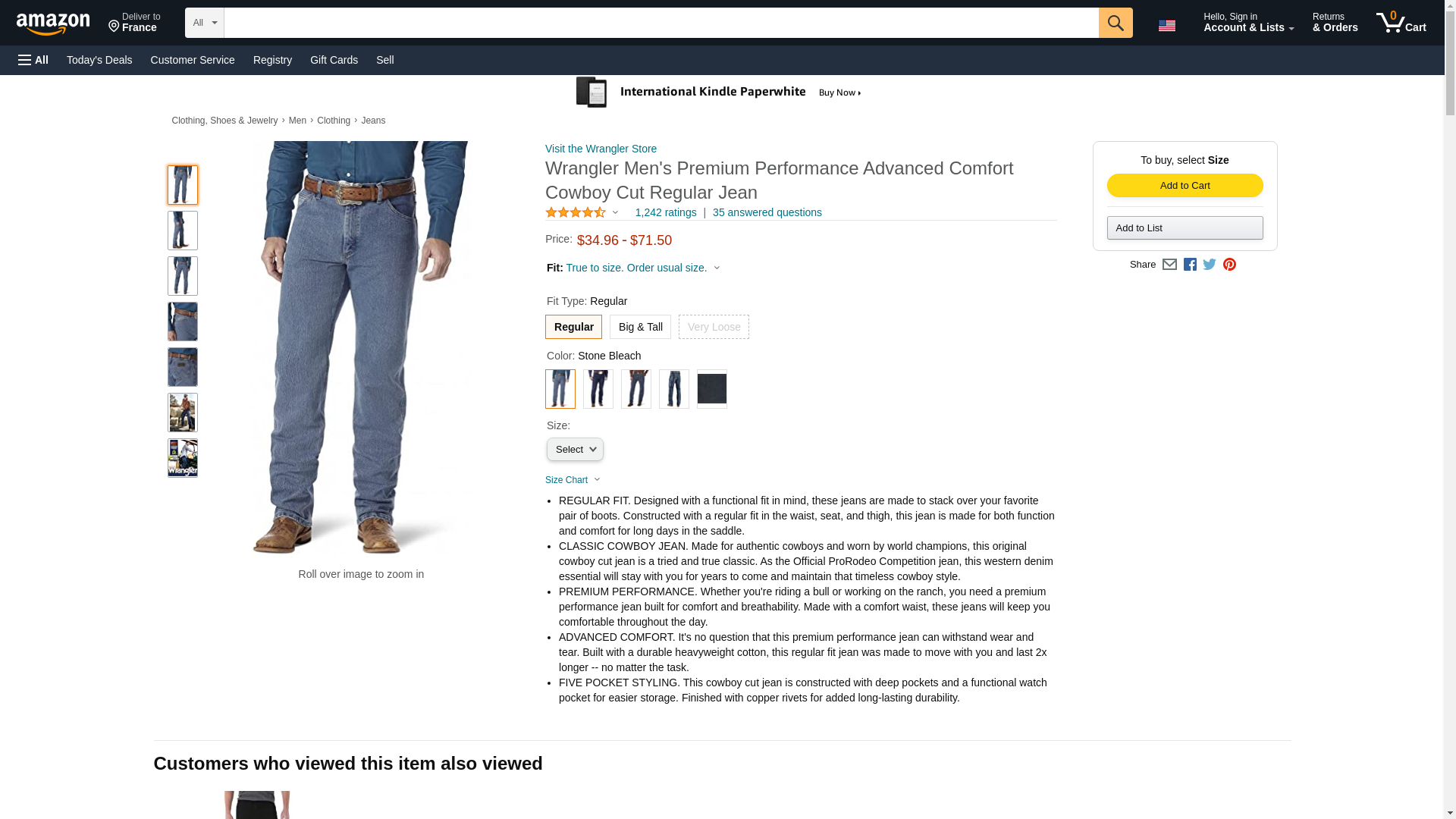 Wrangler Premium Performance Cowboy Cut Regular Fit Jeans, Stone Bleach, W40 L38