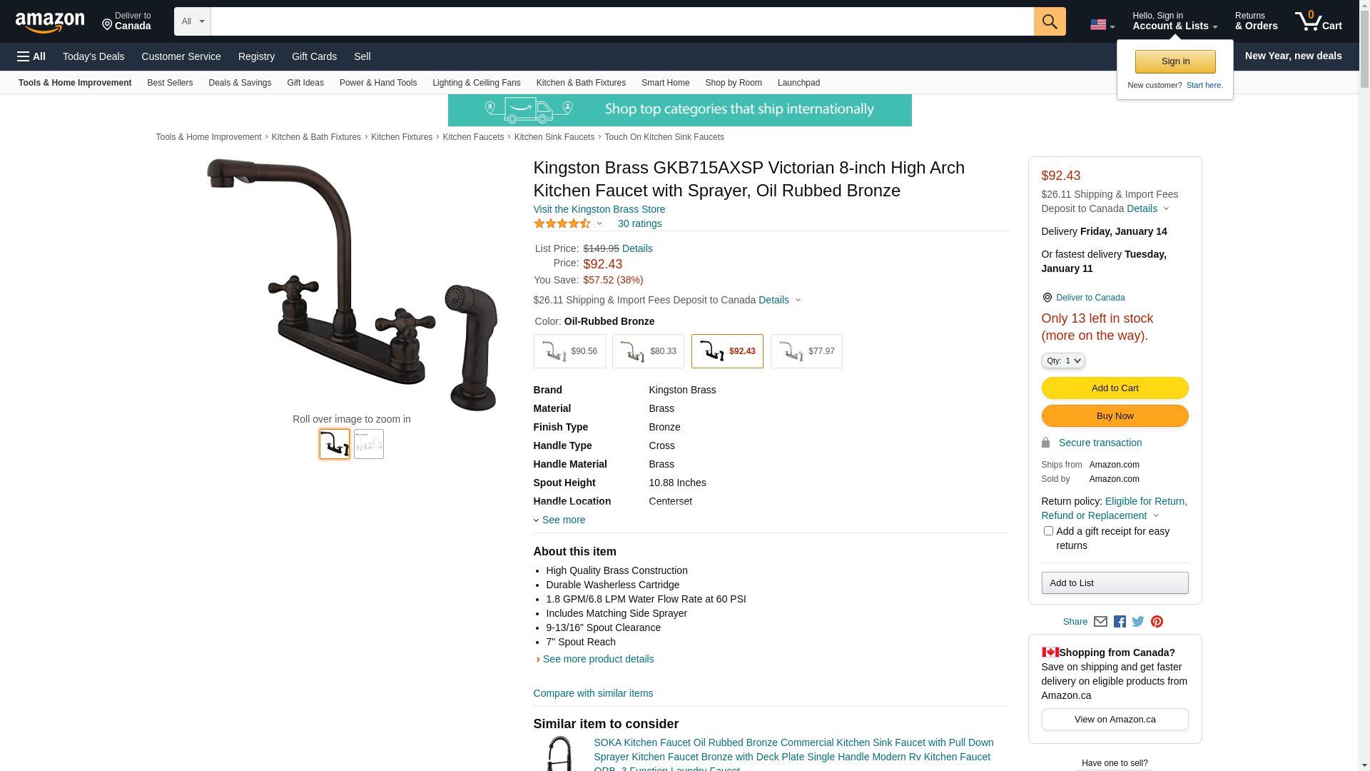 Kingston Brass GKB715AXSP Victorian 8-inch High Arch Kitchen Faucet with Sprayer, Oil Rubbed Bronze