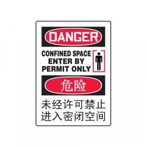 Danger Confined Space Enter By Permit Only (W/Graphic) 14" x 10" - MTLC102XP - Jendco Safety Supply
