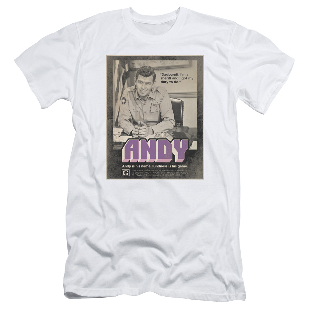 Trevco CBS2200-SF-4 Andy Griffith Show & Andy Adult 30-1 Slim Fit Short Sleeve T-Shirt, White - Extra Large