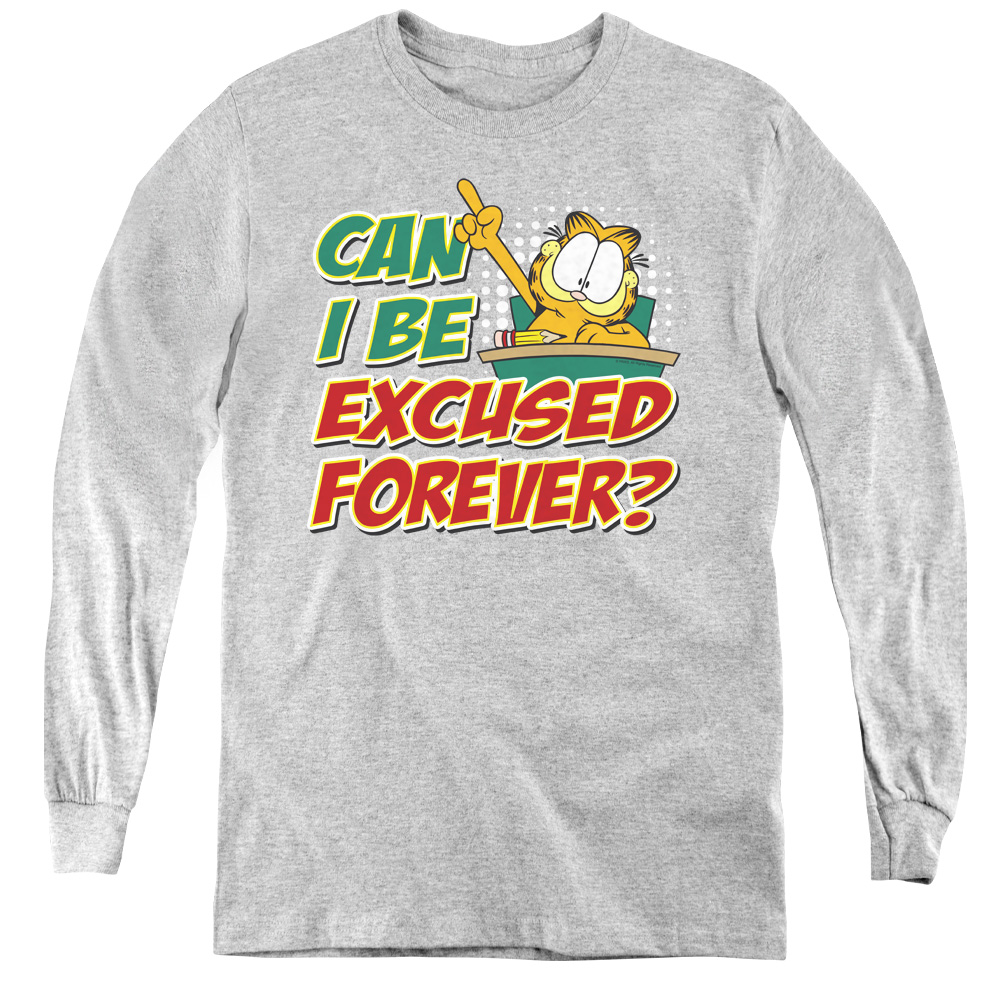Trevco GAR444-YL-4 Garfield & Excused Forever Youth Long Sleeve T-Shirt, Athletic Heather - Extra Large