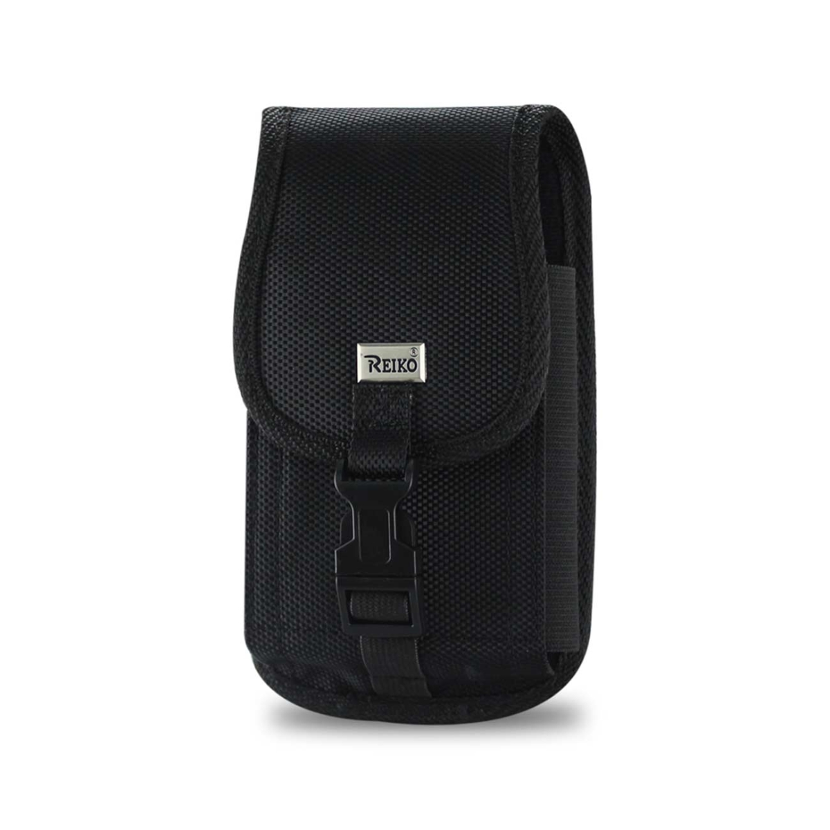 Reiko PH02B-633608BK Vertical Rugged Pouch Samsung Note2 Plus in Black with Metal Logo & Fabric Hook and Eye