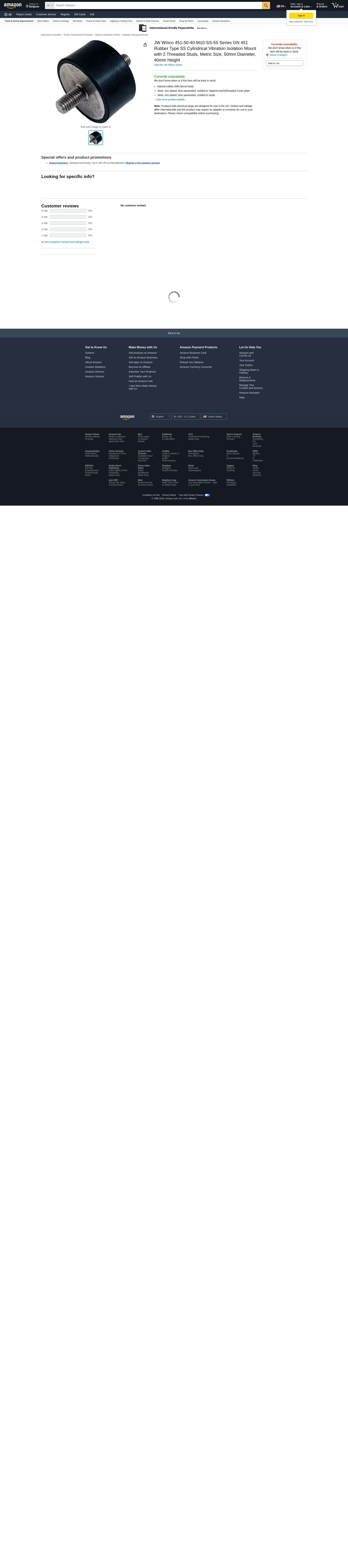 JW Winco 451-50-40-M10-SS-55 Series GN 451 Rubber Type SS Cylindrical Vibration Isolation Mount with 2 Threaded Studs, Metric Size, 50mm Diameter, 40mm Height