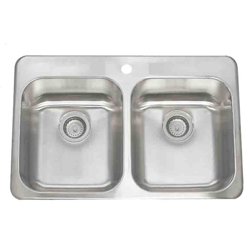 Lenova SS-TM-33818 Apogee 20-Gauge Stainless Steel Top-Mount Double Bowl Kitchen Sink with 1-Faucet Hole, 8-Inch Deep