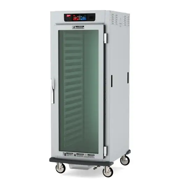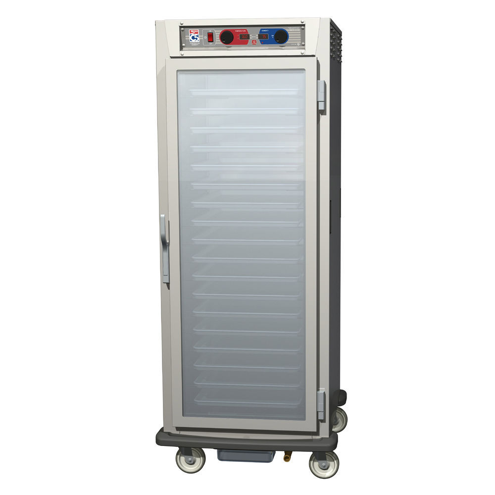 Metro Insulated C5 9 Series Pass-Thru Heated Holding Cabinet, Full Height, Stainless Steel, Full Length Clear Door/Full Length Solid Door, Lip Load Aluminum Slides