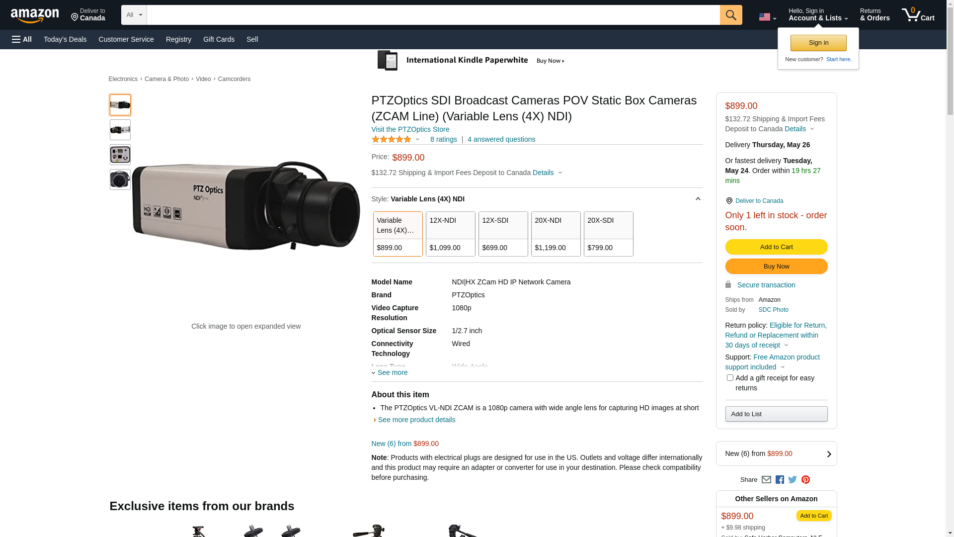 ![]() bhphotovideo.com | PTVLNDIZCAM | 1 | 1 | 1 @ $899.00 |