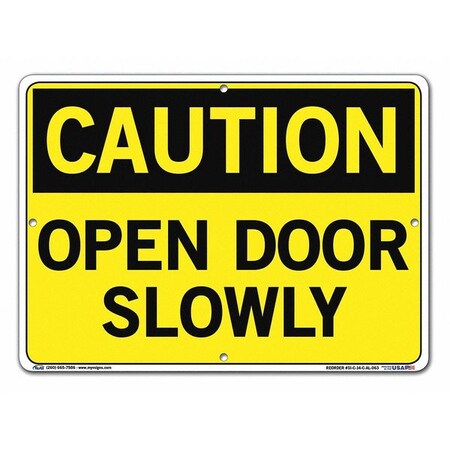 Vestil SI-C-14-C-AL-063 OPEN DOOR SLOWLY Caution Sign, Aluminum, 0.063" Overall Size, 14.5" W x 10.5" H