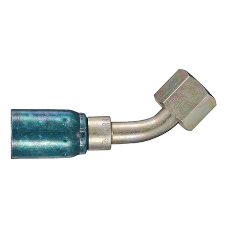- Adapts 3/4" SAE 45-degree flare female swivel end to 5/8" hose ID at a 45-degree angle