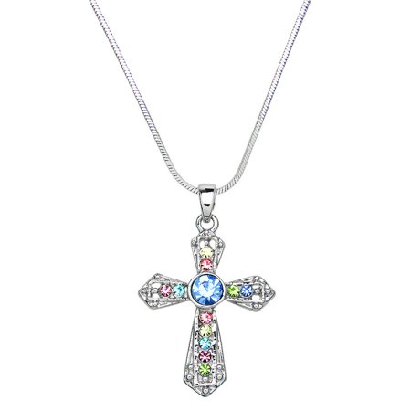 ^^Cross^^Multicolor Rhinestone Crystal^^17" Snake Chain^^Rhodium Plated