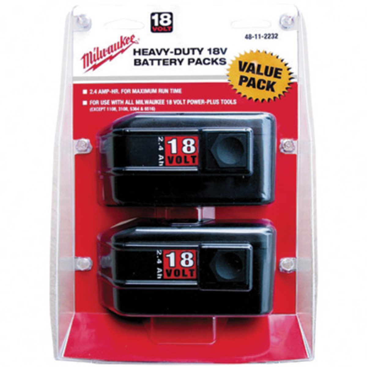 - For use with all 18-volt Milwaukee tools; (excludes models 1108, 3108, 5364, and 6516)