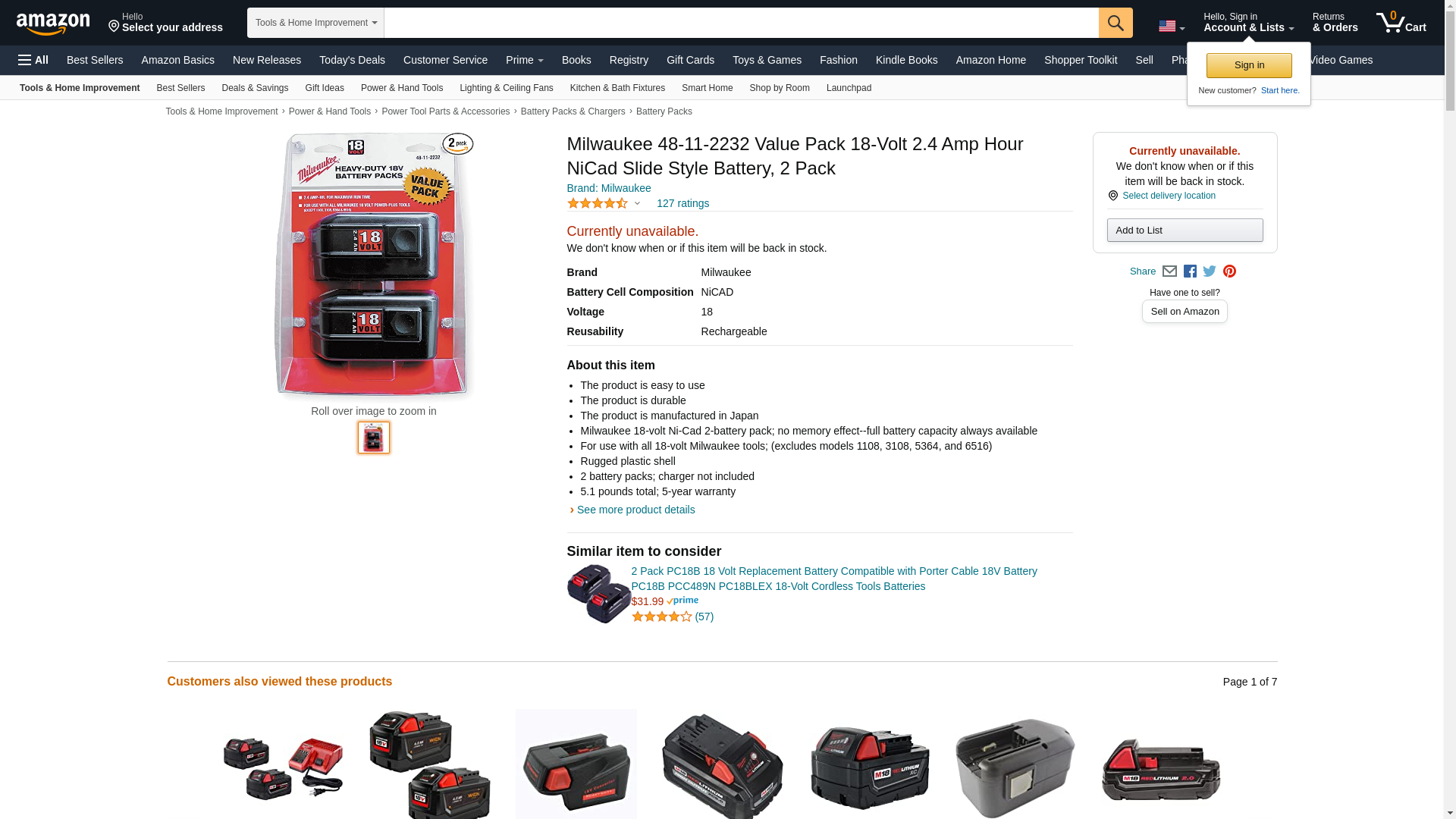- Milwaukee 18-volt Ni-Cad 2-battery pack; no memory effect--full battery capacity always available