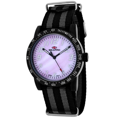 Seapro Women's Bold Alloy case, Nylon strap, Pink Mother of Pearl dial, Quartz movement, Scratch resistant mineral, Water resistant up to 3 ATM - 30 meters - 100 feet