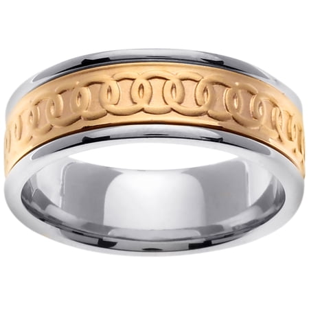 "Two Tone Platinun and 18K Yellow Gold Celtic Infinity Knot Men's Comfort Fit Wedding Band (8mm) Size-12.5"