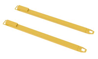 LIFT TRUCK FORK EXTENSIONS; Provide the extra support needed to lift long or large objects with a fork truck.; Fits onto forks up to 2" thick.; Pin lock is no longer available; Extensions are put on by sliding them up the fork at a 45
