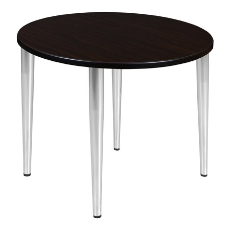 Kahlo 42 in. Round Breakroom Table- Mocha Walnut Top, Chrome Tapered Legs