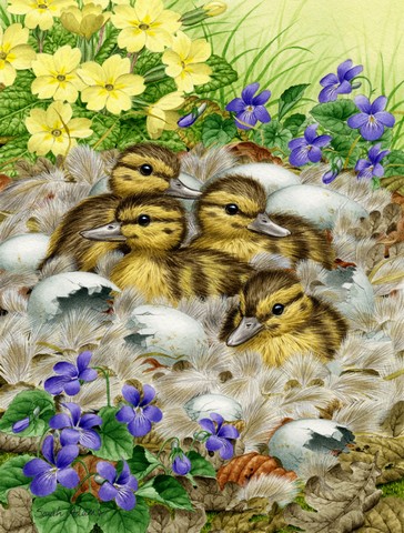 Mallard Duck Chicks Flag Canvas House Size