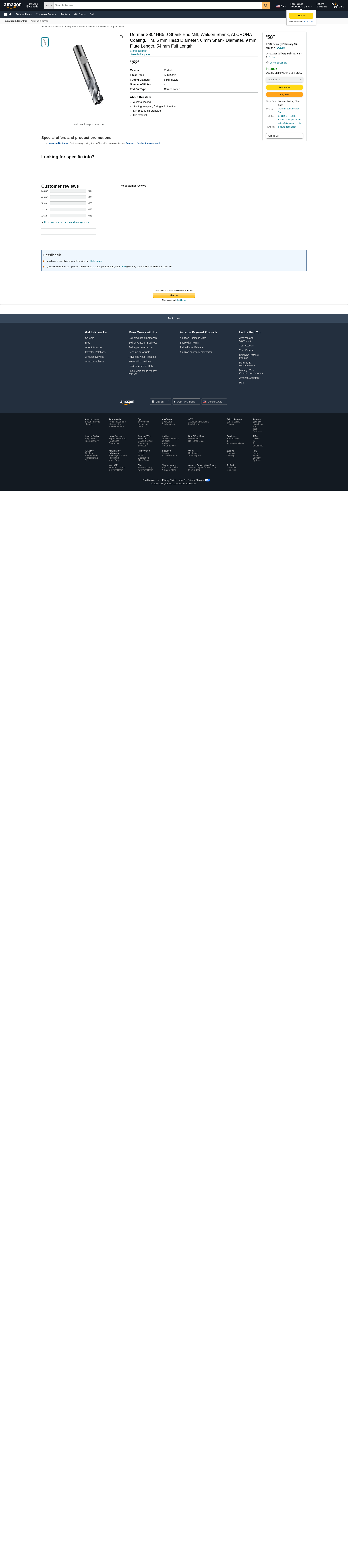 Dormer S804HB5.0 0641743 End Mill N 6527 K 5.00 mm - MROSupply.com