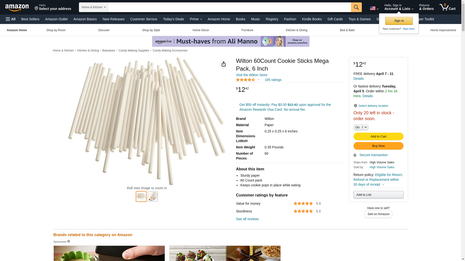 Wilton 6-Inch Cookie Sticks Mega Pack, 60-Count. Sturdy paper. 60 count pack. Keeps cookie pops in place while eating