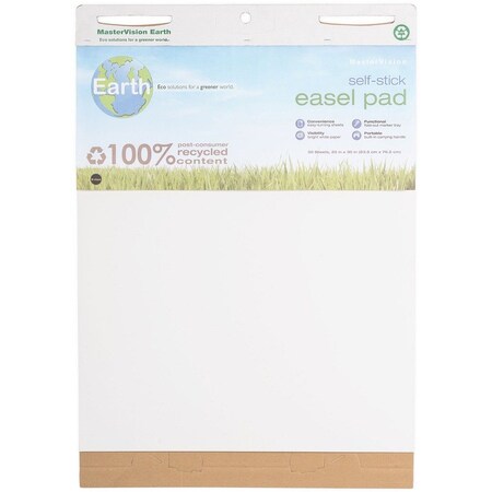 Self-stick easel pad is made with a high percentage of recycled material and is 100 percent recyclable. Bright white sheets are easy to turn. Easel pad features a foldout tray to store markers (sold separately). Carry easily with built-in handle.