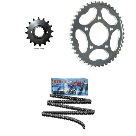 <br />DID 530ZVM-X Super Street Series Chain Natural, SUNSTAR Front & Rear Sprocket Kit for Street HONDA VF1000R 1985-1986 O.E.M. Gearing 17/44 <br /> <br />DID 530ZVM-X Super Street Series Chain <br /> <br /> <li>Color: Natural</li> <li>Type: 530</li> <li>Links: 110</li> <li>Suitable for use up to 1400cc</li> <li>Increased rigidity for better power transfer and greater resistance to stretching under load.</li> <li>Overall improved performance that meets the demands of the current high-power bikes.</li> <li>Features gold or nickel</li> <li>Average tensile strength 10,408 lbs.</li> <br />SUNSTAR Steel Front Sprocket <br /> <br /> <li>Teeth: 17T</li> <li>Manufactured from case-hardened chromoly steel for the ultimate in strength and durability.</li> <li>Parkerizing surface treatment for rust and corrosion resistance</li> <br />SUNSTAR Steel Rear Sprocket <br /> <br /> <li>Teeth: 44T</li> <li>Constructed of the highest-quality 1045 high-carbon steel.</li> <li>Exclusive heat treatment for added strength and wear resistance.</li> <li>Most are zinc-plated and have a baked-on durable paint process for corrosion resistance.</li>