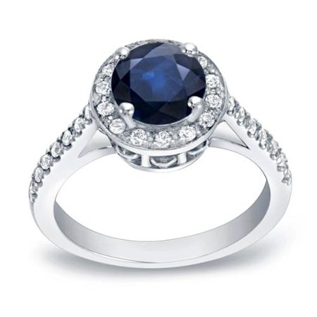 This gorgeous diamond engagement ring features a 1 1/4ct round blue sapphire center stone in prong setting and surrounded by 28 diamonds in pave settings. This fine jewelry is available in your choice of 14-karat white, yellow or rose gold with high polish finished. <br /> <br /> <ul> <li>Jewelry Type: Fine</li> <li>Stone Shape: Round</li> <li>Band Width: 2-3 mm</li> <li>Stone: Gemstone</li> <li>Clarity: SI1-SI2</li> <li>Number of Gemstones: 1</li> <li>Diamond Color: H-I</li> <li>Side Stone: Diamond</li> <li>Gold Karat: 14k</li> <li>Gemstone Cut: Round</li> <li>Total Diamond Weight: Up to .5 Carats</li> <li>Jewelry Setting: Prong</li> <li>Diamond Cut: Round</li> <li>Gender: Female</li> <li>Ring Style: Anniversary, Engagement</li> <li>Gemstone Treatment Code: E</li> <li>Cut Grade: Very Good</li> <li>Jewelry Finish: High Polish</li> <li>Gemstone: Sapphire</li> <li>Metal Color: White, Yellow, Rose</li> <li>Metal: Gold</li> <li>Birthstone Month: September</li> <li>Gemstone Color: Blue</li> <li>Size: 8.5, 5.5, 7, 6, 5, 6.5, 4, 7.5, 4.5, 9, 8</li> </ul> <br /> <br />