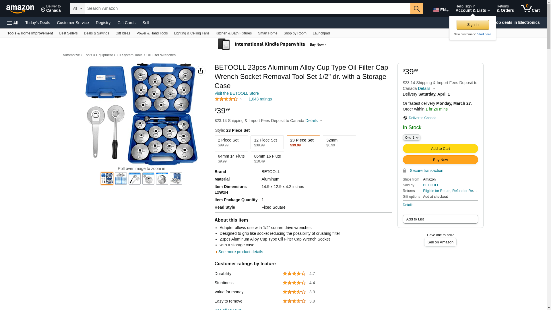 BETOOLL HW0103 23pcs Aluminum Alloy Cup Type Oil Filter Cap Wrench Socket Removal Tool Set 1/2"dr. with a Storage Case