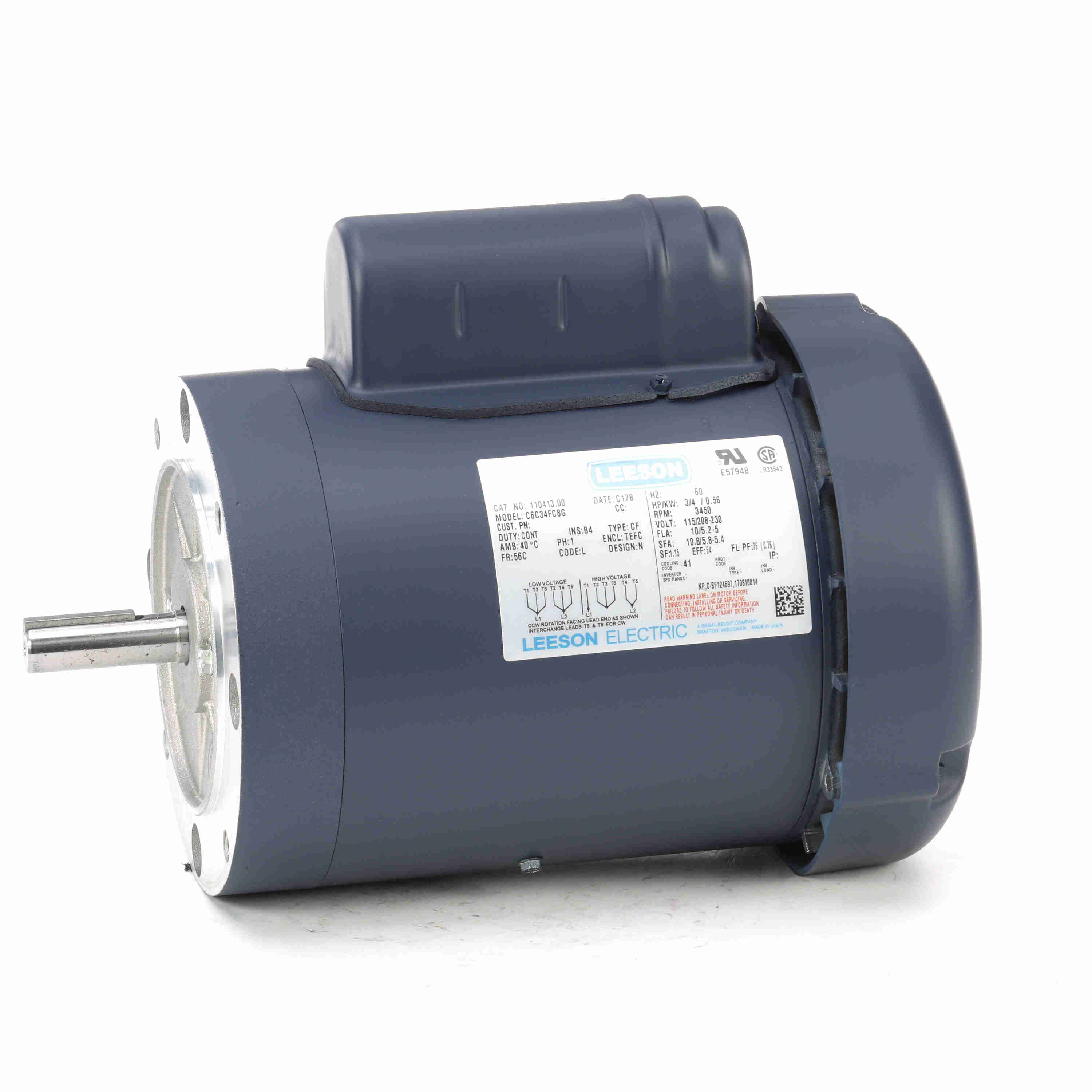 Leeson Electric, 110413.00, .75HP, 3450RPM, 1PH, 115V;208V;230V, 56C Frame, C-Face Flange, Footless, TEFC, General Purpose Motor