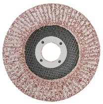 Flap Discs,Aluminum,Reg Thickness,T27,4 1/2",60 Grit,7/8 Arbor,13,300 rpmFeatures: Calcium stearate coating liquefies under heat keeping the material cooler and preventing loading with soft metals | Premium blue fired AO grain with a polyester heat-treated backingMinimum Order: 10Standard Pack: 10EA/BXCountry Of Origin: US