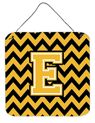 Caroline's Treasures CJ1053-EDS66 Letter E Chevron Black and Gold Wall or Door Hanging Prints, 6x6, Multicolor