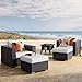 - CONTEMPORARY STYLE - Clean lines and a sleek profile enhance the modern look of this patio set. The 5" upholstered cushions feature all-weather, machine washable fabric covers for easy upkeep