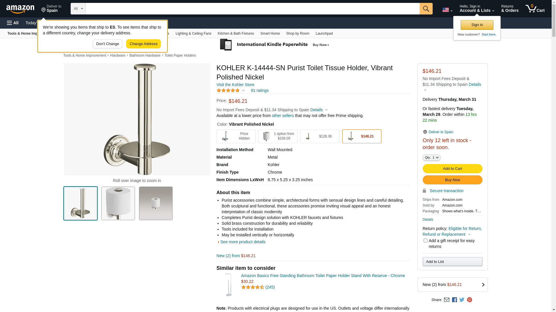 KOHLER 14444-SN Toilet Tissue Holder, Vibrant Polished Nickel
