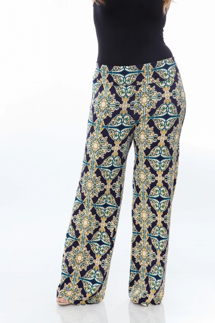 White Mark PS550-118-3XL Plus Size Printed Palazzo Pants, 118-Navy & Yellow - 3XL