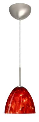 Besa Lighting 1BC-757241-HAL-SN 1X40W G9 Sasha II Pendant with Garnet Glass, Satin Nickel Finish