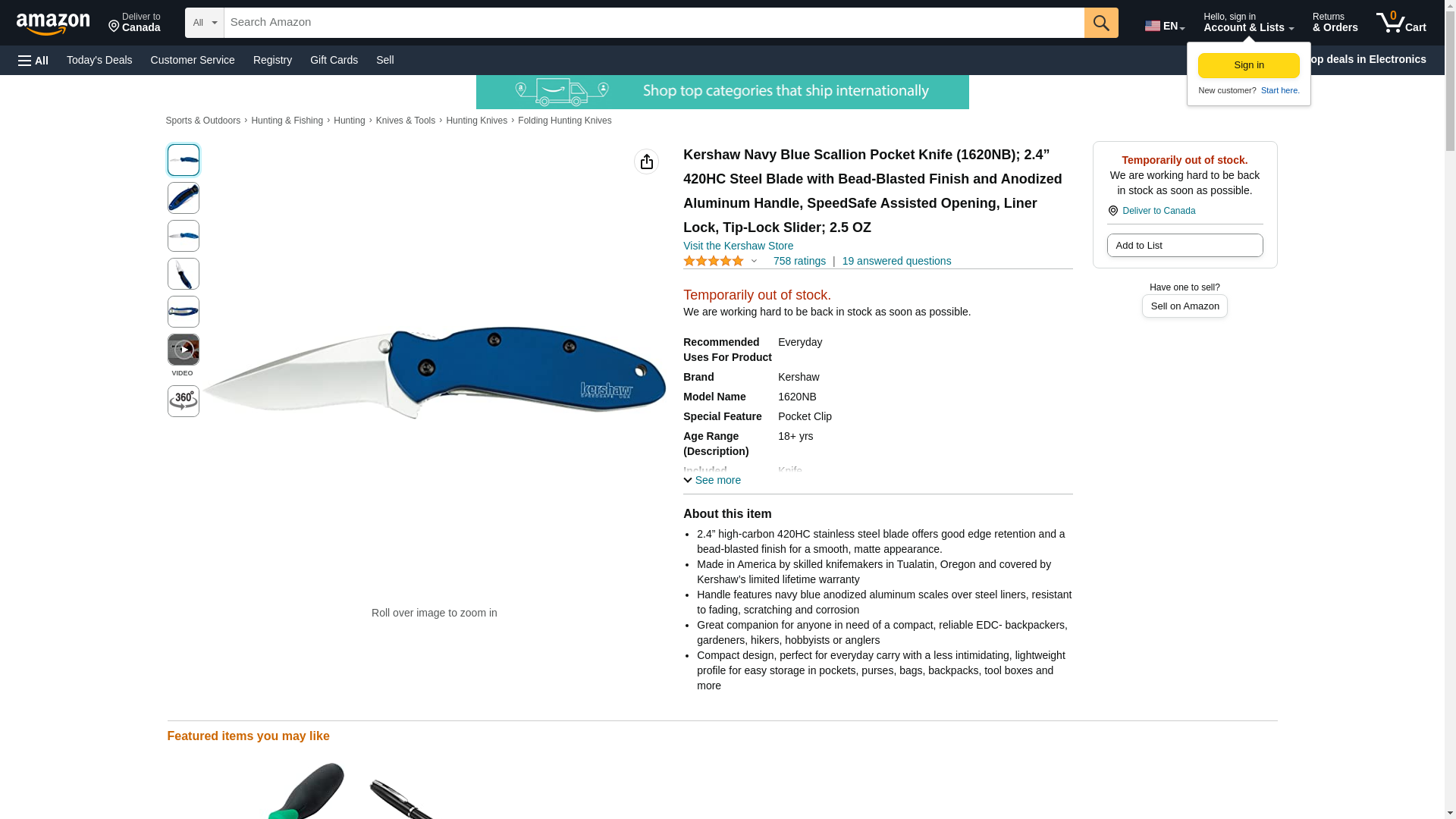 Kershaw Scallion 2.40" Folding Drop Point Plain Bead Blasted 420HC SS Blade Navy Blue Anodized Aluminum Handle Includes Pocket Clip