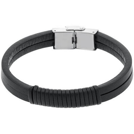 <br /> <b>Reinforcements Silver-Tone Stainless Steel Men's Double Wrapped Cord Center Black Leather Bracelet:</b> <ul> <li>Crafted in stainless steel</li> <li>Men's bracelet</li> <li>Comfortable and easy to wear</li> <li>Reinforcements</li> <li>Box closure</li> <li>Measures 7"</li> </ul> <p>Every piece of Walmart jewelry passes rigorous inspection at our Quality Assurance labs. So you can buy with confidence ? guaranteed. <spanclass=text2bold> <a href="http://learn.walmart.com/Beauty/Articles/Jewelry_Quality_Guarantee/20636/">Learn More</a> <br /> </spanclass=text2bold></p>