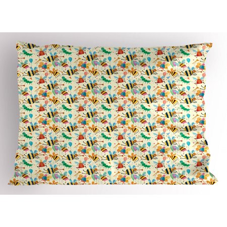 Bee Pillow Sham Graphic Bee Figures Partying Dancing Playing Music Together with Balloons and Trumpets, Decorative Standard Size Printed Pillowcase, 26 X 20 Inches, Multicolor, by Ambesonne