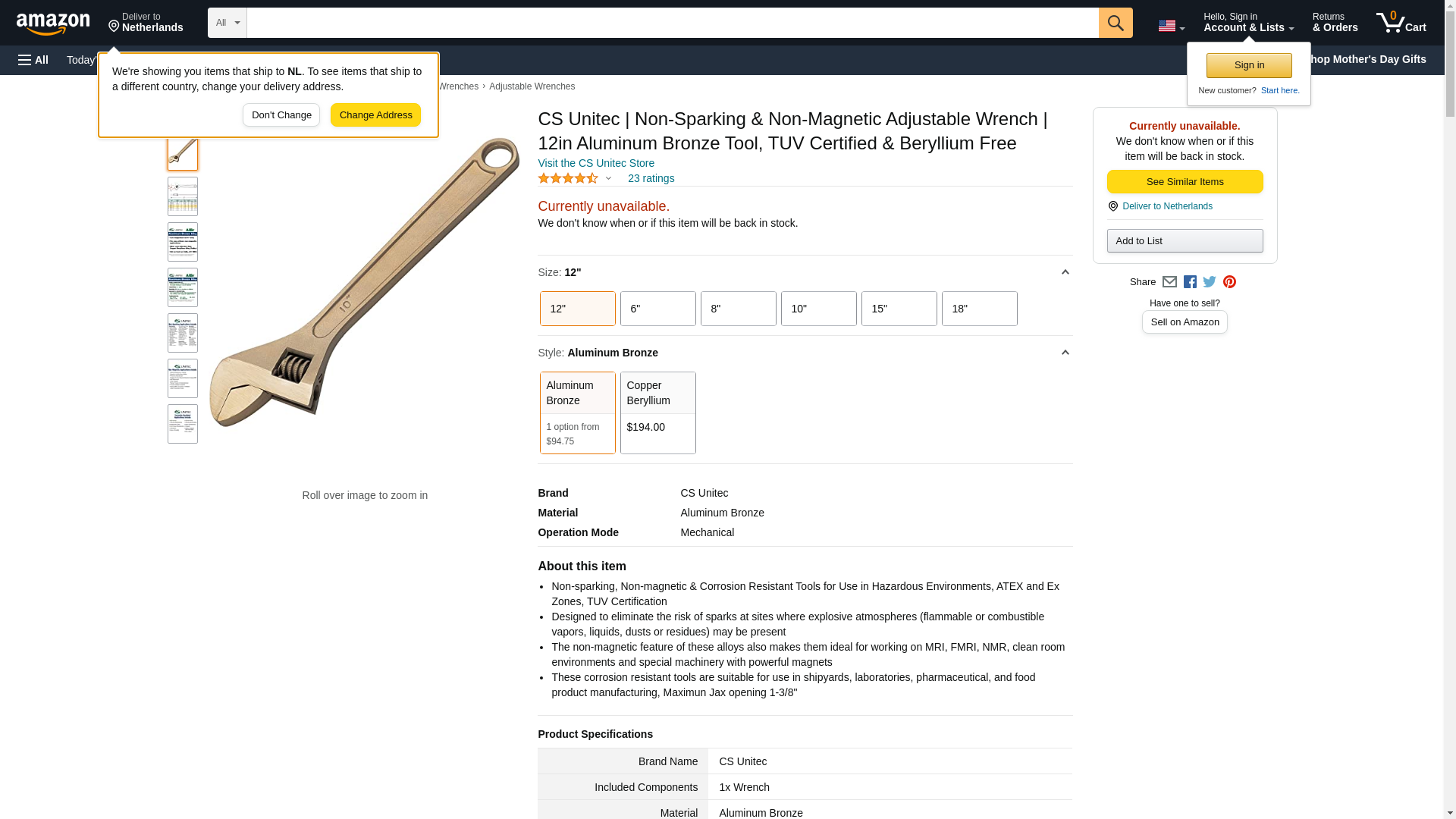 CS Unitec EX501-12A 12'' Adjustable End Wrench, Aluminum Bronze