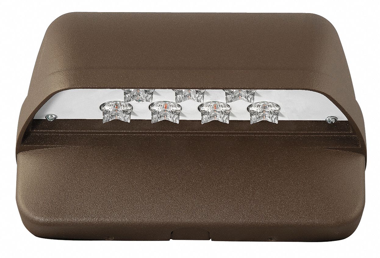 ' LED Wall Pack, 17 Watts, 1500 Lumens, 88 Lumens Per Watt, Voltage 120 to 277VAC, Color Temp. 5000K, Height 6-13/16 In., Width 9-19/32 In., Length 14-1/2 In., Housing Finish Bronze, Lens Material Acrylic, Series LNC, CRI 70, Housing Material Die Cast Aluminum, Operating Temp. Range -40 Degrees to 40 Degrees C, Rated Life 60, 000 hr., Light Distribution Type III Full Cutoff, Recommended Mounting Height 8 to 12 ft., Description/Special Features 7 LEDs '