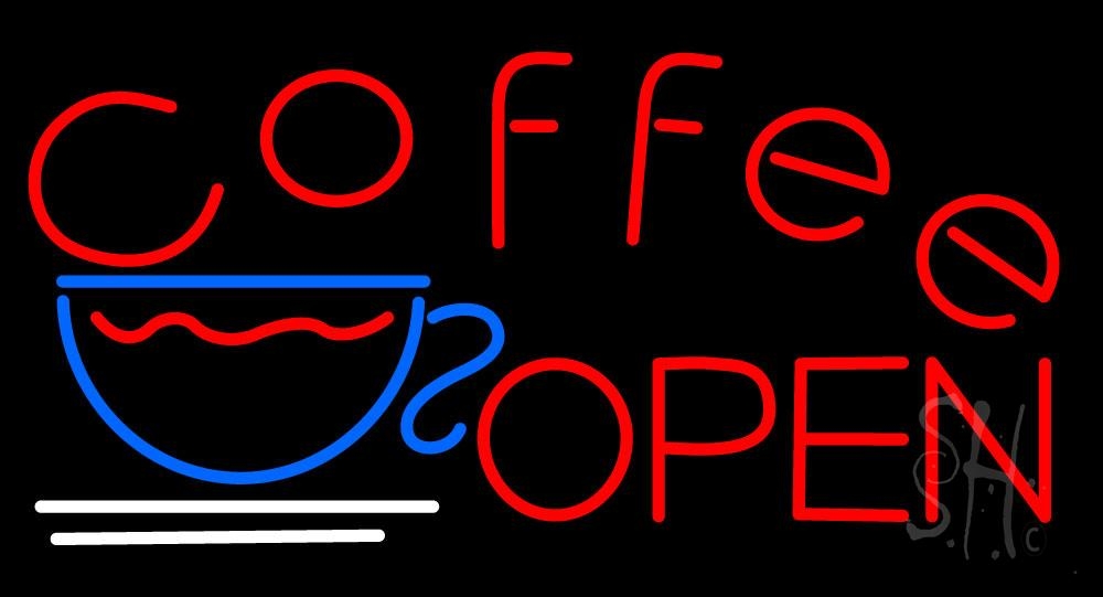 The Sign Store N105-1518 20 x 37 in. Red Coffee Open Neon Sign - Red, Blue & White