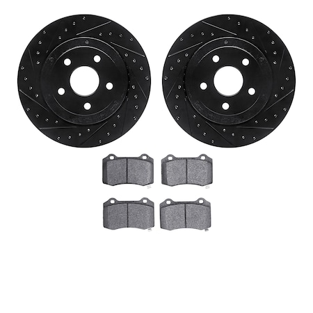 Dynamic Friction Company Rear Brake Rotors Drilled and Slotted Black with Ultimate Duty Performance Brake Pads - 8402-42004