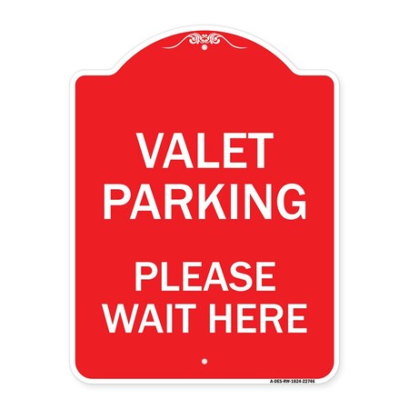 Designer Series Valet Parking Please Wait Here, Red & White Aluminum Architectural Sign