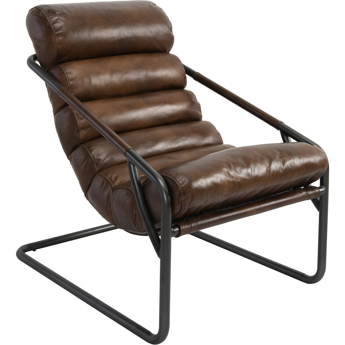 Classic Home 53004220 Jackson Accent Chair in Channel Tufted Brown Top Grain Leather