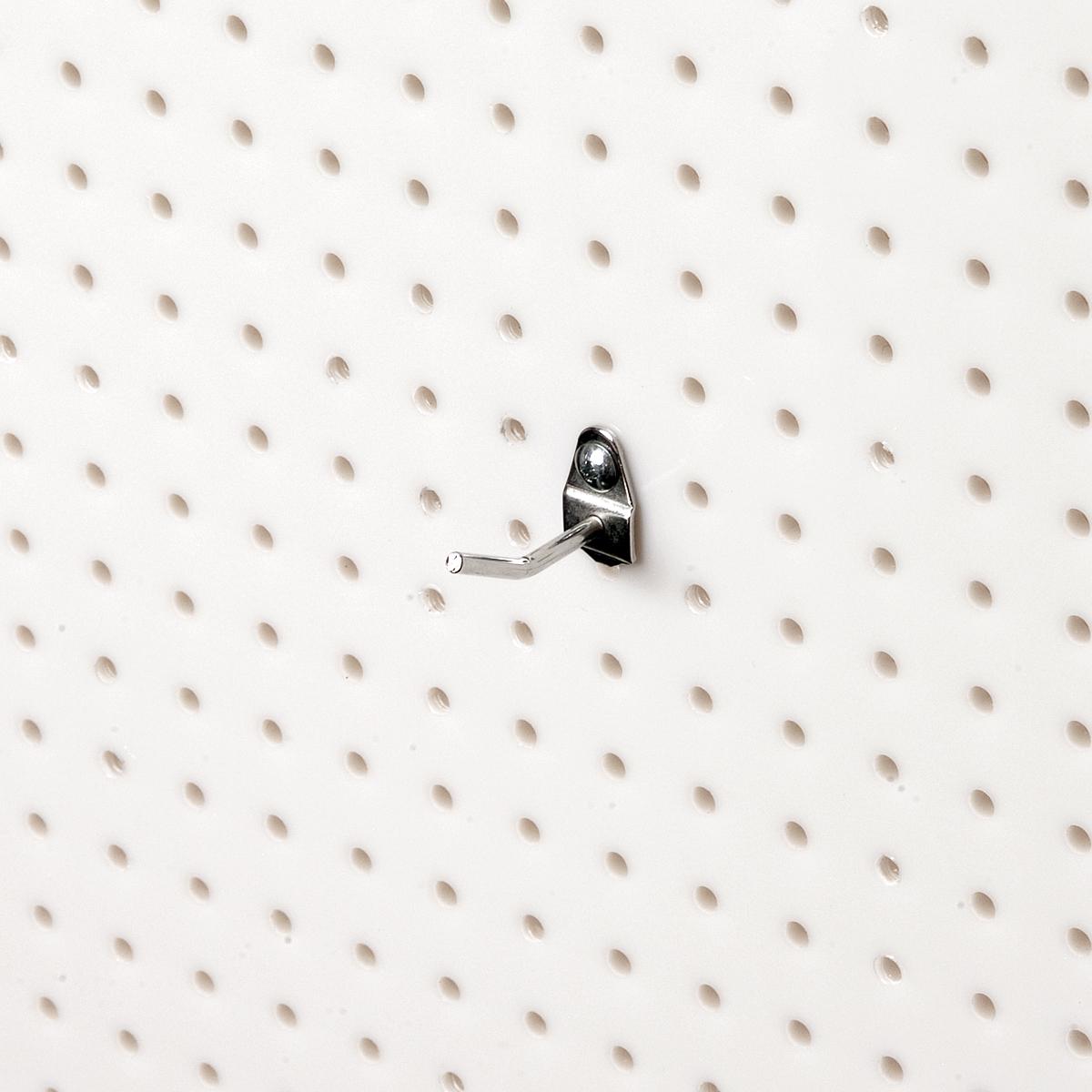 Q-Peg hooks and accessories can also be mounted on any standard 1/8 or 1/4 pegboard. All hooks can be mounted in different and unique positions to accommodate mostly anything. This unique and patented double locking system ensures all hardware will stay put and never fall out even after repetitive use or relocation.