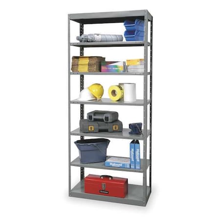 Metal Shelving, Gray, Powder Coated, Frame Material Steel, Load Capacity per Shelf 400 lb, Whole Unit Load Capacity 2,800 lb, Number of Shelves 7, Overall Depth 12 in, Overall Height 84 in, Overall Width 48 in, Post Construction Angle, Shelf Configuration Standalone, Shelf Style Solid, Shelving Material Steel, Assembled Unassembled, Shelving Gauge 18 ga, Post Gauge 14 ga, Shelf Adjustment Increments 1 1/2 in, Number of Drawers 0, Duty Rating Heavy-Duty